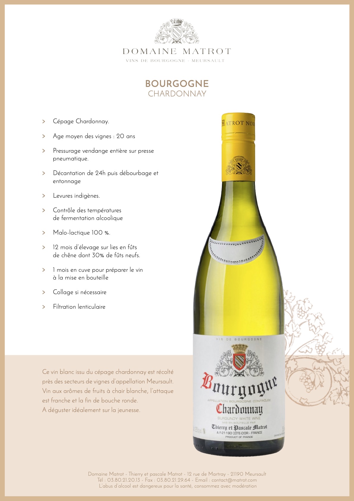 Sedoso, cremoso, con notas suaves de vainilla, miel, mermelada de limón, jazmín, canela y almendra amarga. Es el clásico vino del año en Bourgogne, con cuerpo medio+, acidez media+ y alcohol medido, meloso, con intensidad y final medio+, e incremento en boca a las 24h que es cuando lo catamos.