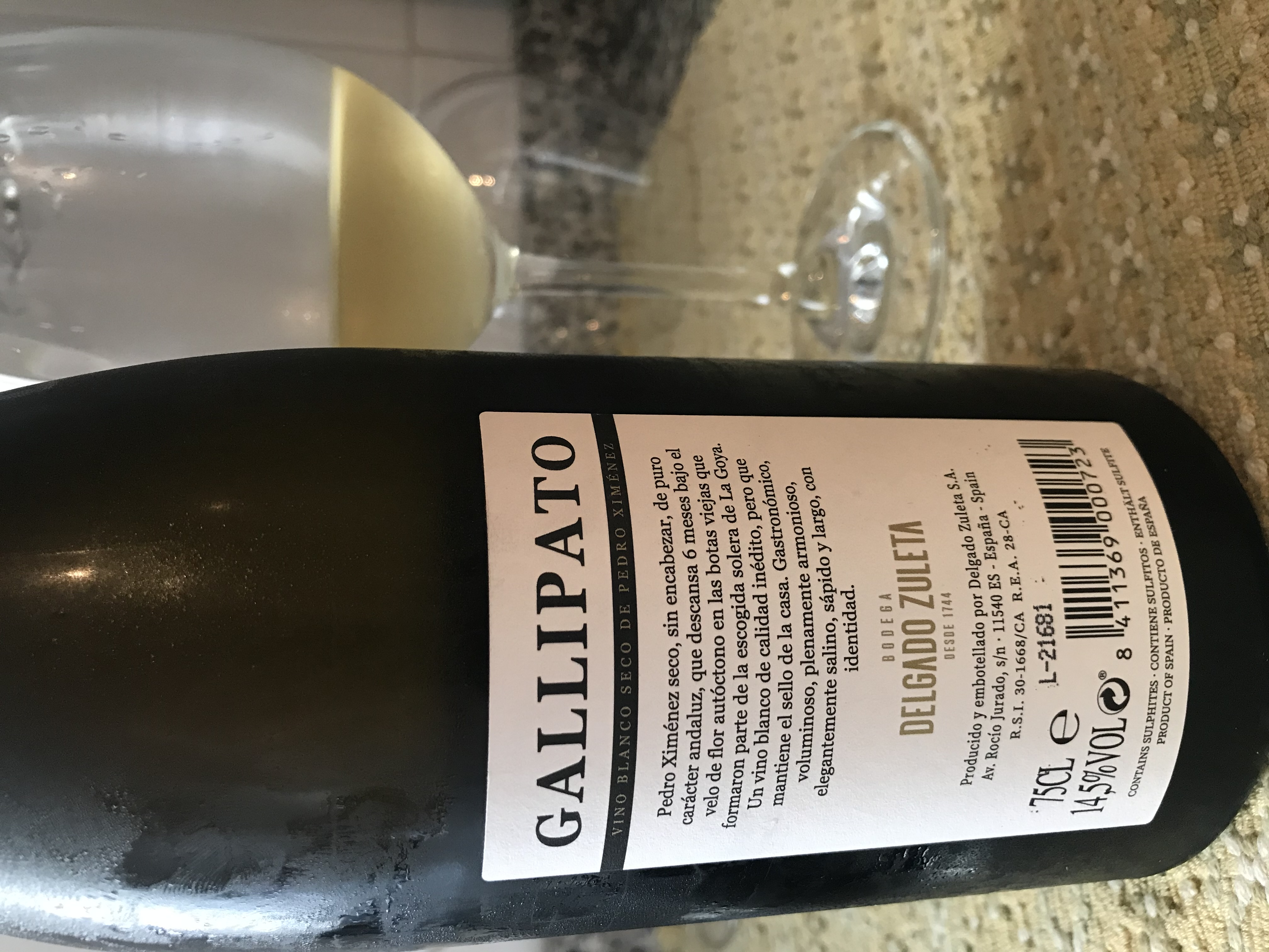 14,5% de PX en viñas viejas que son parte de las Soleras de La Goya, manzanilla emblema, descansa 6 meses bajo velo de flor.