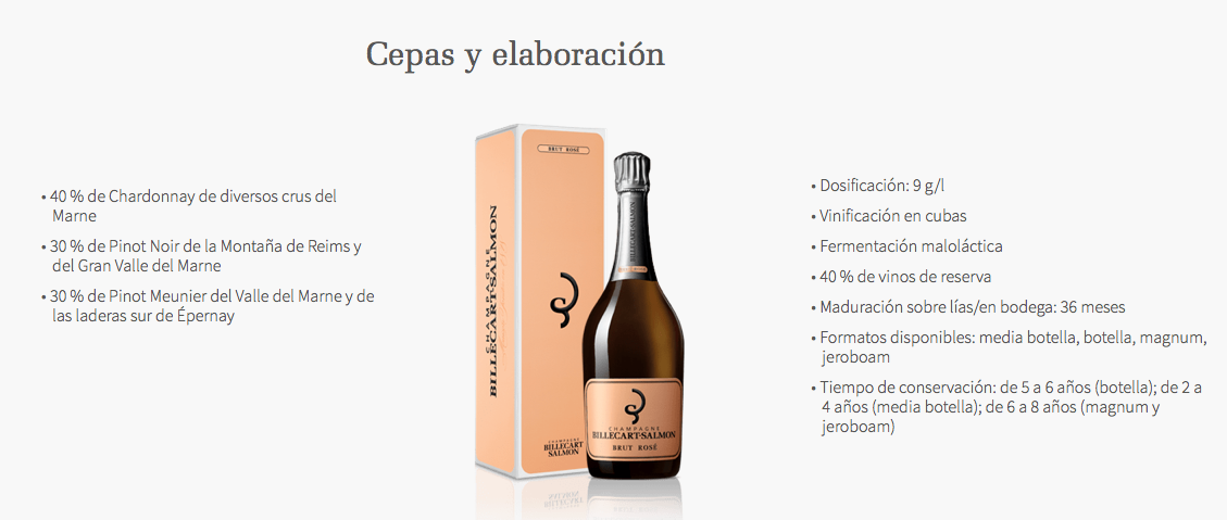 Rosa salmon , con algun reflejo cobrizo. Burbuja , fina , lenta y que no forma corona. Limpia y brillante