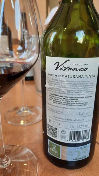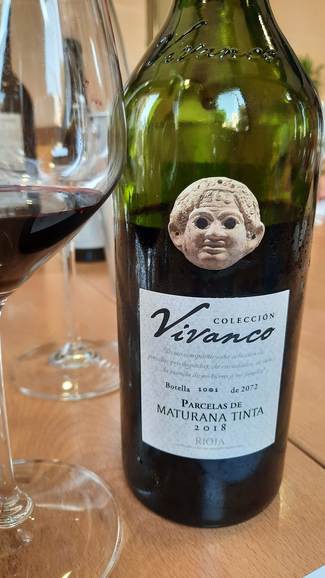 Un vino muy especial, como su variedad de uva, autóctona de la Rioja, la Maturana tinta. Granate oscuro, con ribetes violáceos y capa alta. Limpio, brillante, aromas a tierra, frutas negras.