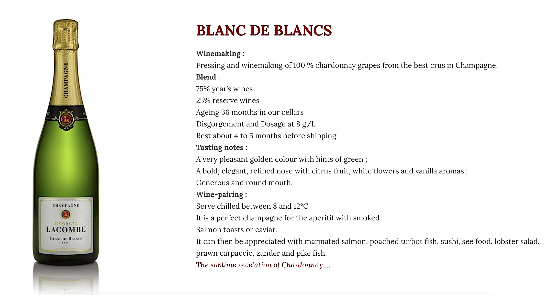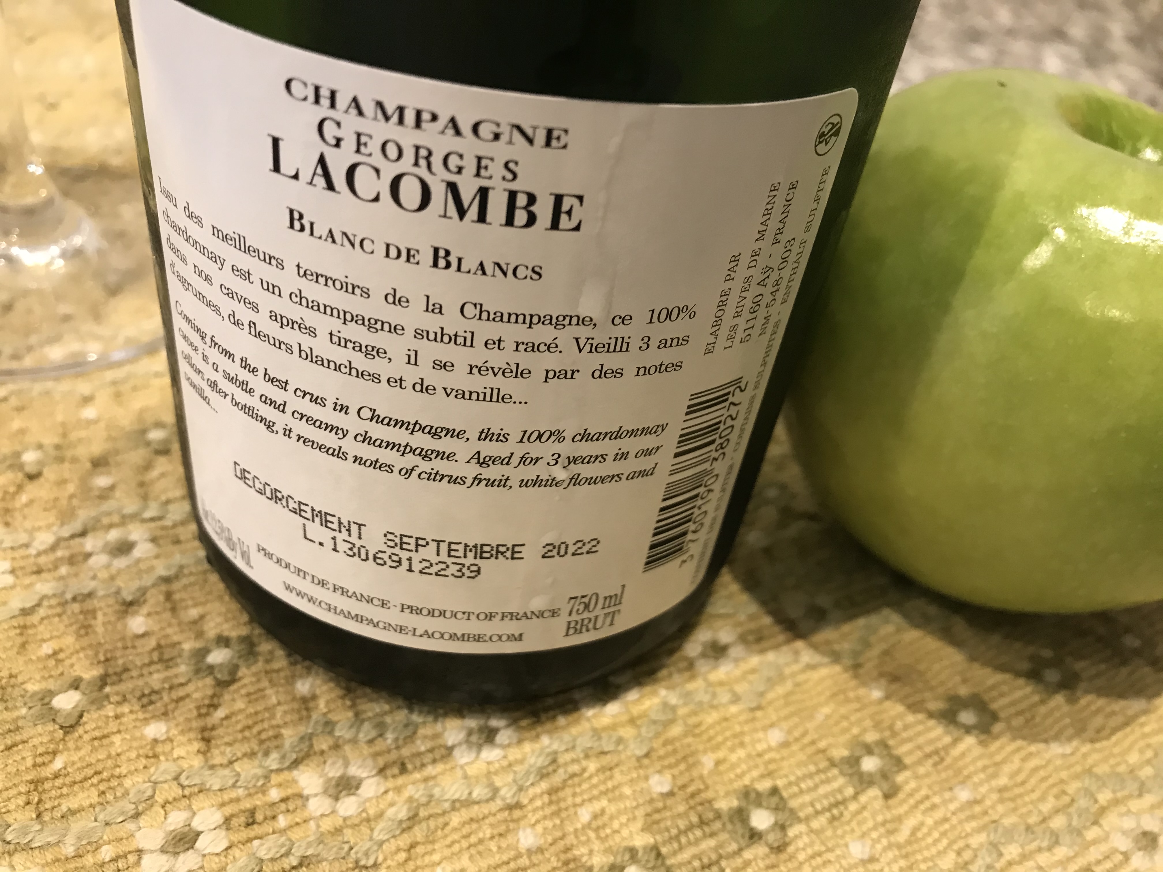 Champagne fresco, con acidez alta, mucha fruta fresca y madura ( degüelle Agosto 2021). En definitiva , gustoso.