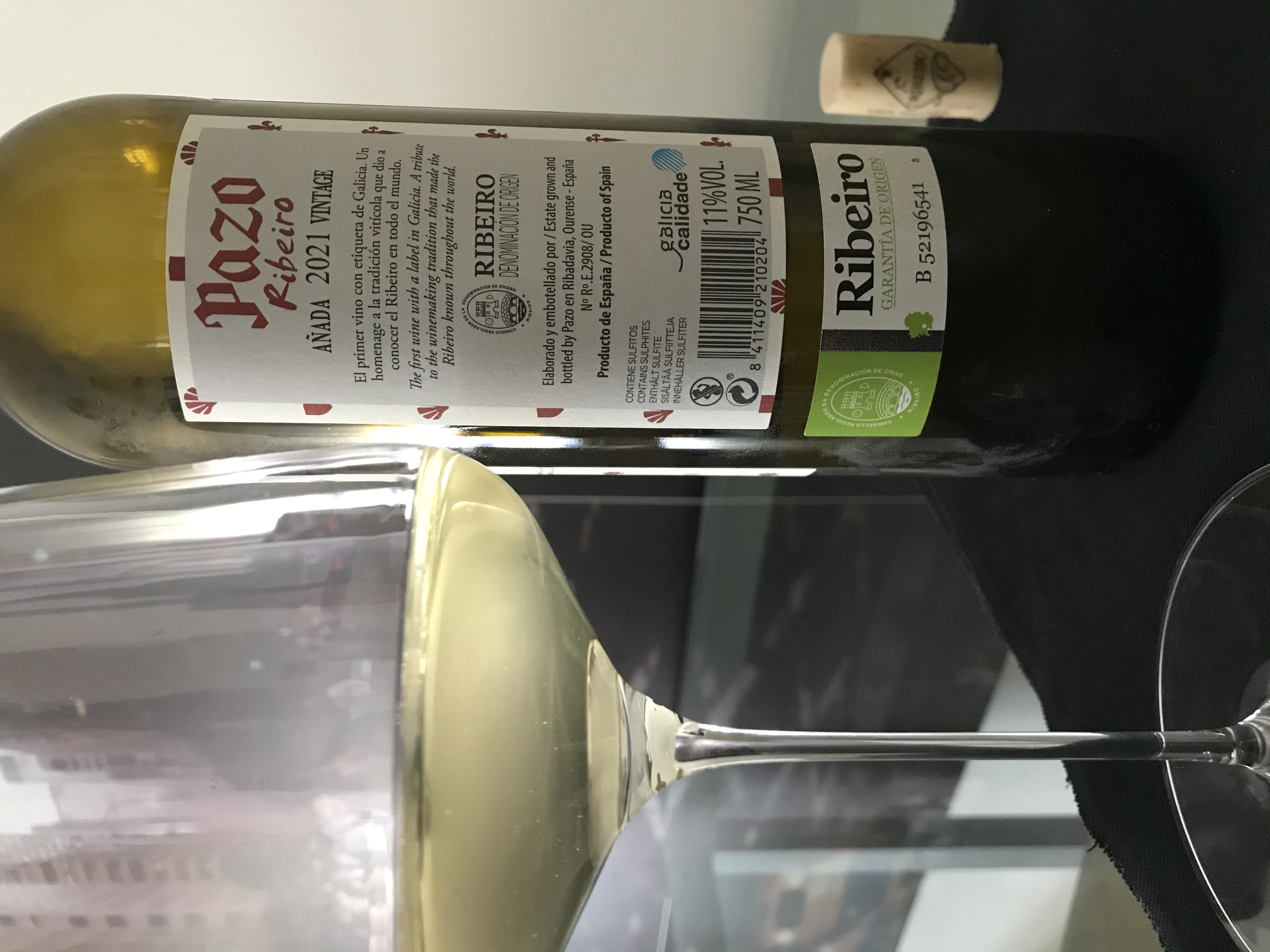 Seco, con acidez media y alcohol bajo. Medio cuerpo por el contacto de algunas lías. Notas de miel, lima, limón, pomelo, piña, mango, flores blancas, piedra. Final medio.