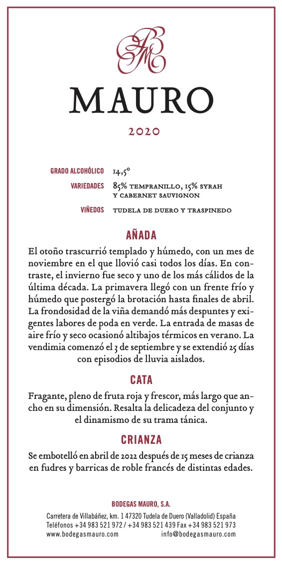 Fino, sápido, tirante, concentrado y con una madera que no camufla. Qué gusto da beberlo y qué bien va a evolucionar en botella en los próximos años. Y pensar que Mauro va a acabar convirtiéndose en un referente de vino fino en el Duero…
