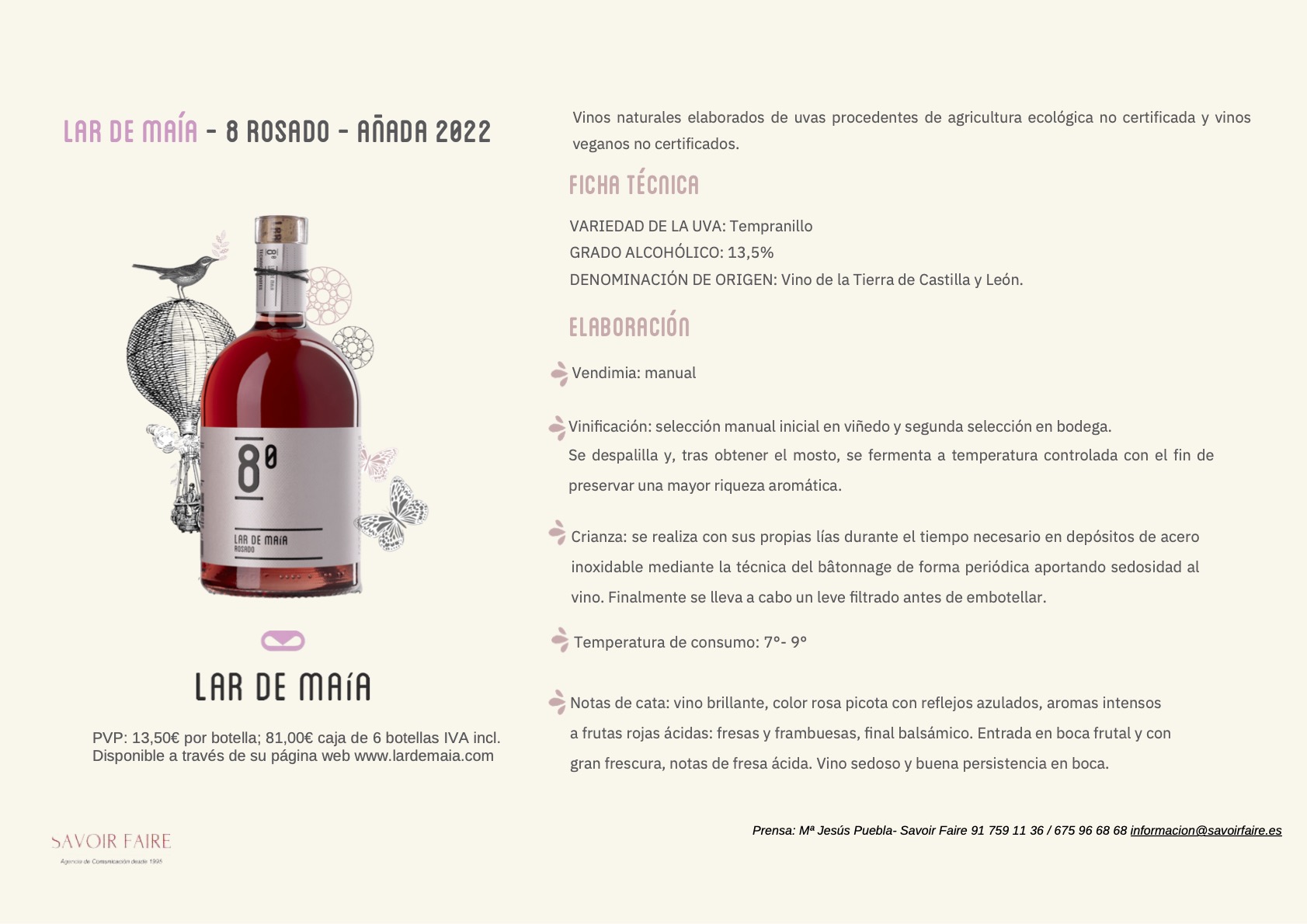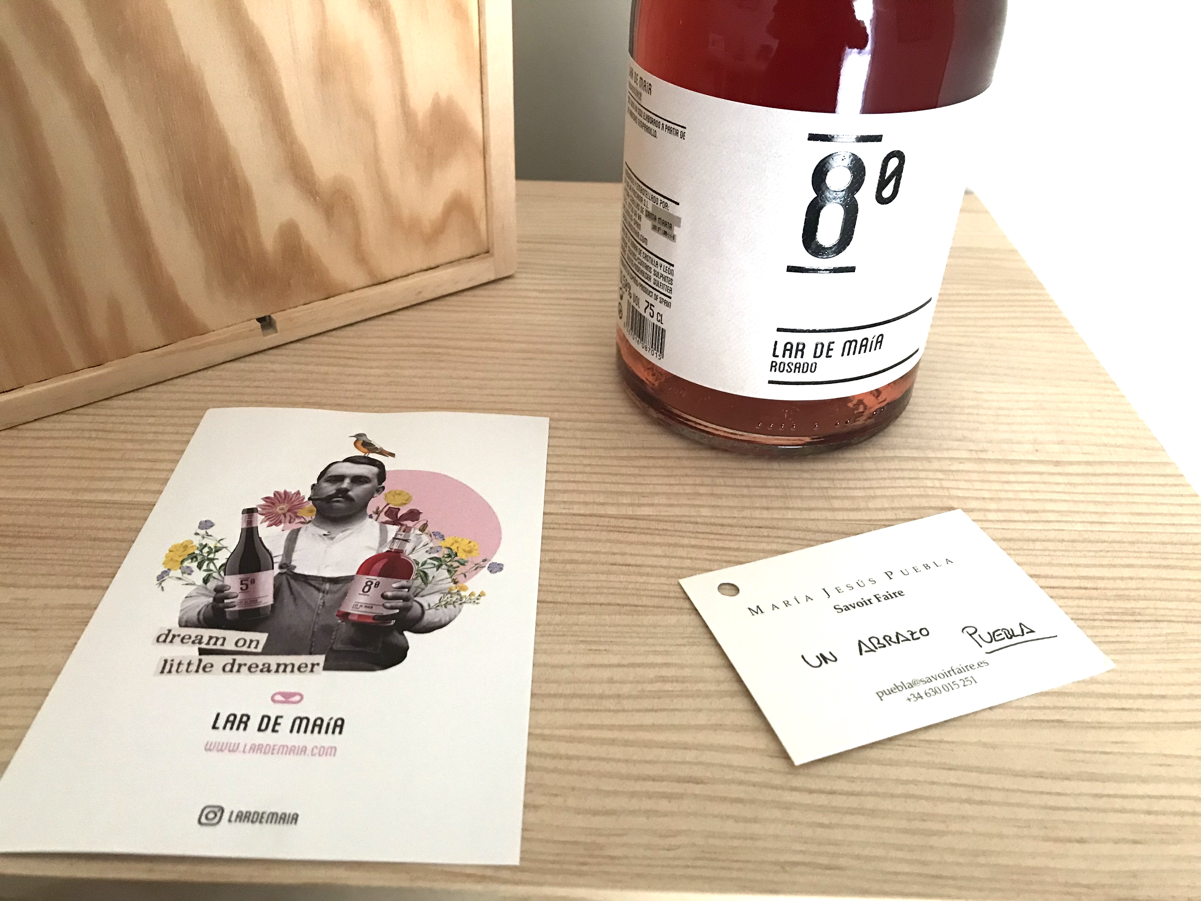 Notas aromáticas medio +, limpias, ahumadas, con fruta roja ( cereza, fresa, frambuesa), piruleta de fresa, corteza de naranja. Muy salino, herbáceo y con algas de mar. Puntas frescas de nata y crema de leche o yogur de fresa por sus lías.