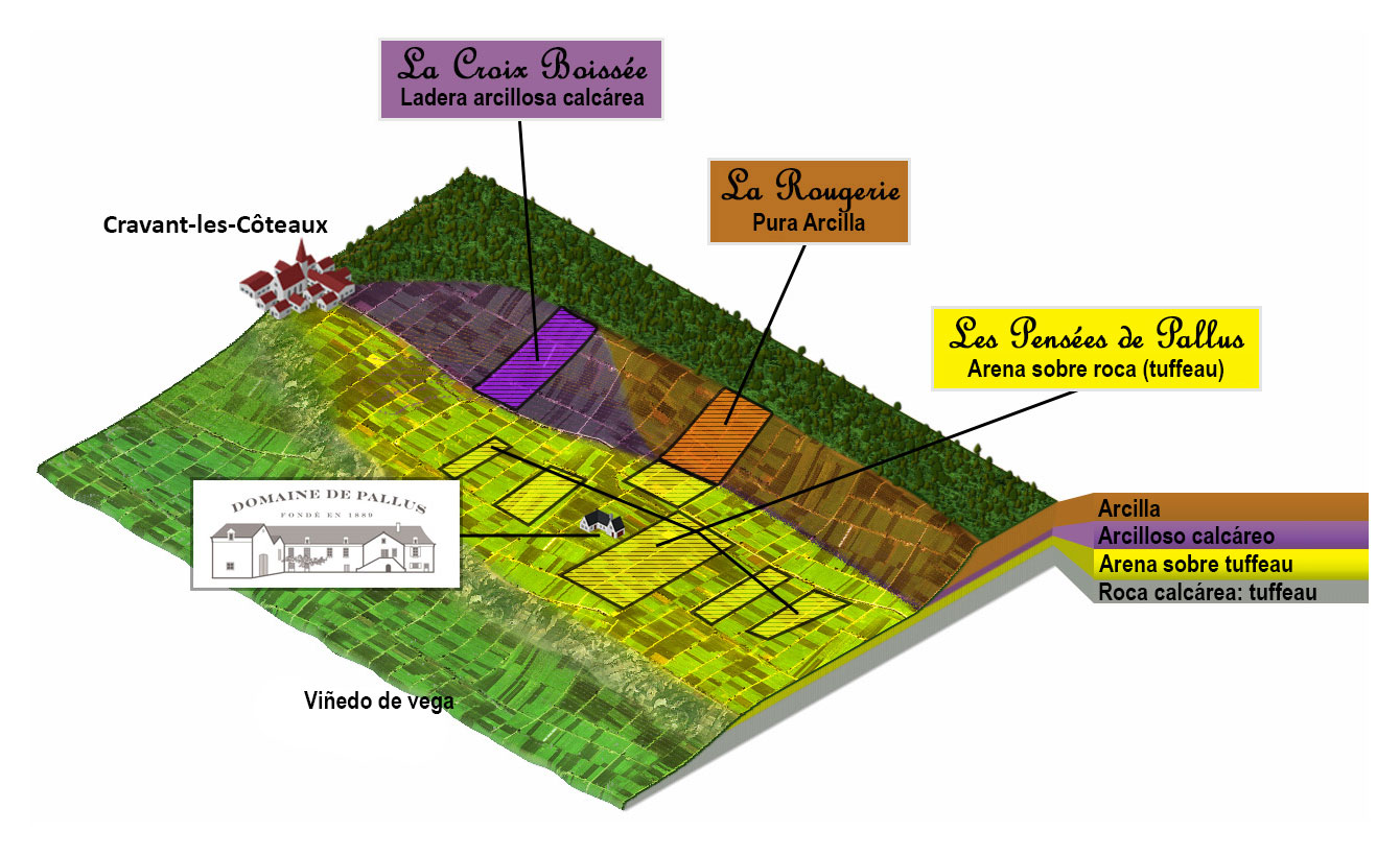 Domaine de Pallus Cabernet Franc nace de parcelas de viñas jovenes plantadas a una densidad de 8000 pies/Ha en seleccion masal proveniente del propio Domaine, así como de Domaine des Ouches, en Bourgueil y de Clos Rougeard en Saumur Champigny.