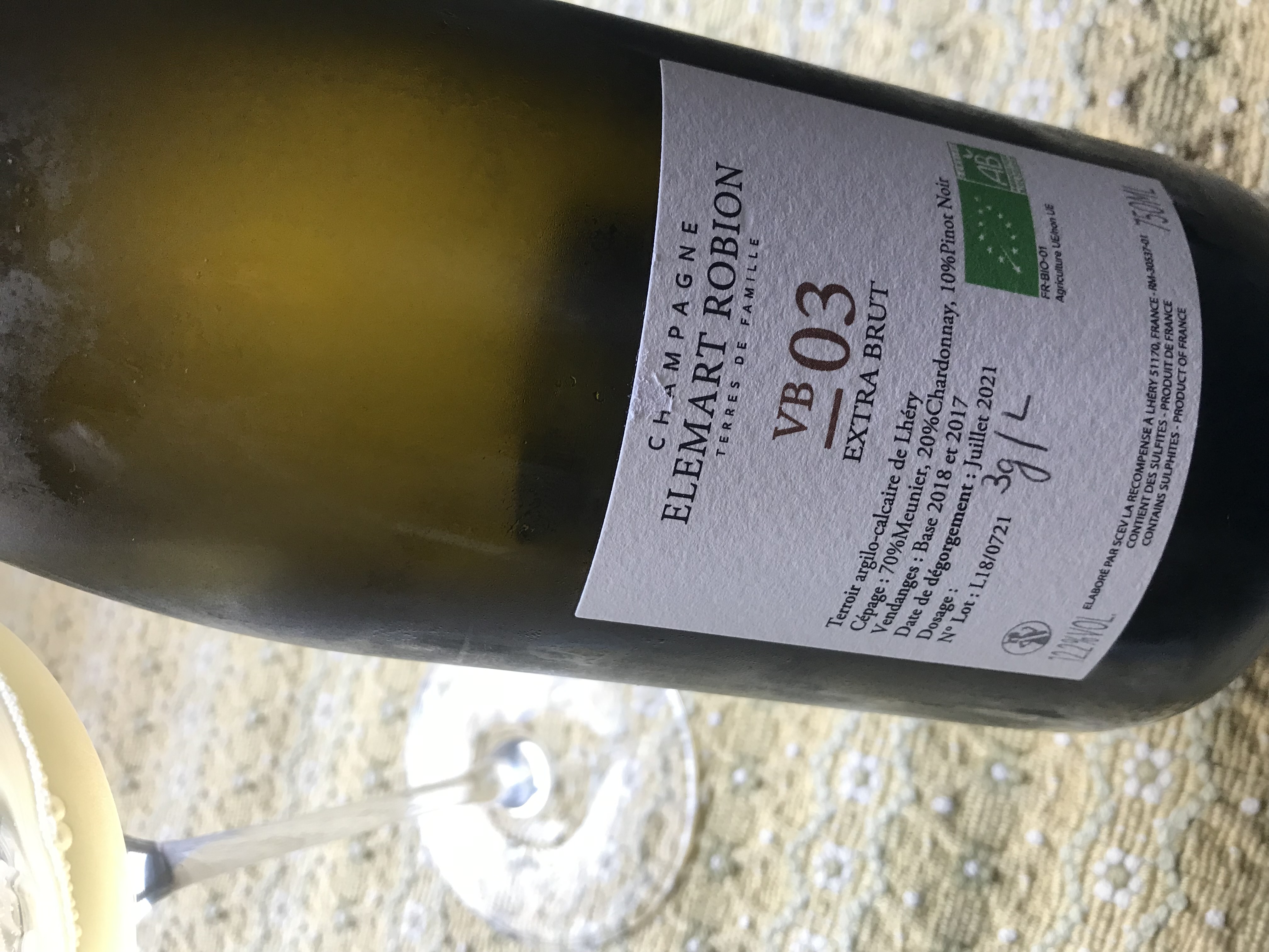 Casi seco, muy buen azúcar mínimo, burbuja fresca y pequeñita, refrescante, nada agresiva. Cuerpo medio+, ampuloso y con tintas que le dan notas de ferrita ácida del bosque. Pronunciado en aromas y boca, largo al final. es Panadería de broche con crema de Chantilly.
