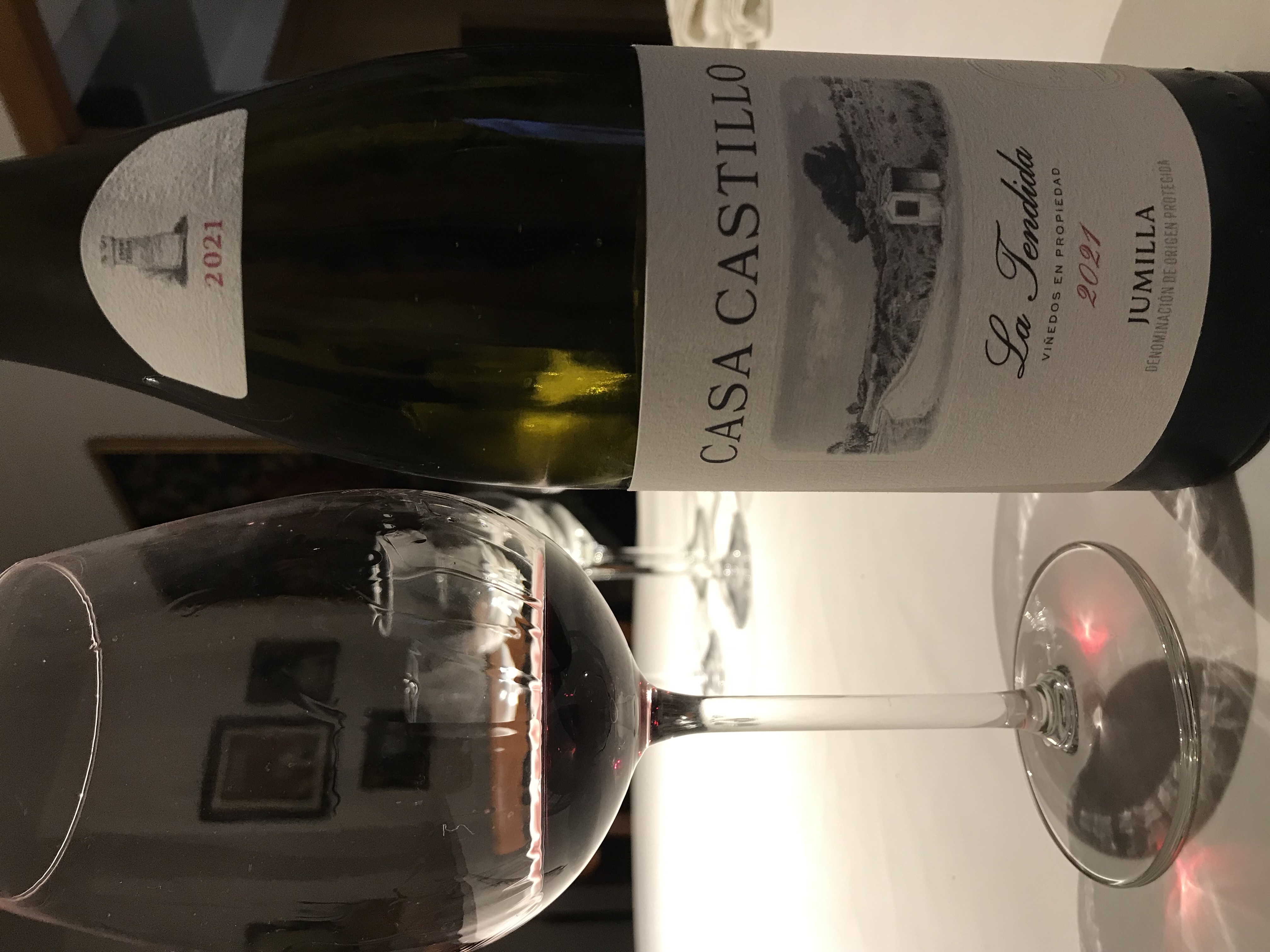Vino algo reducido al principio, pero a las 24 h. se oxigena y apertura aérea. Mucha fruta roja ( cereza, frambuesa, fresa, en ese orden), monte bajo. Pimienta negra y blanca.