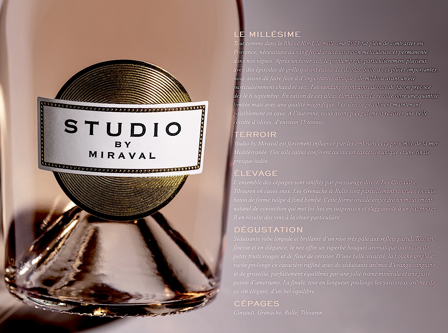 Es cítrico, pronunciado en aromas, floral y mineral-salino y marino. Notas de fresa y pétalos de rosa, naranjas, azahar.