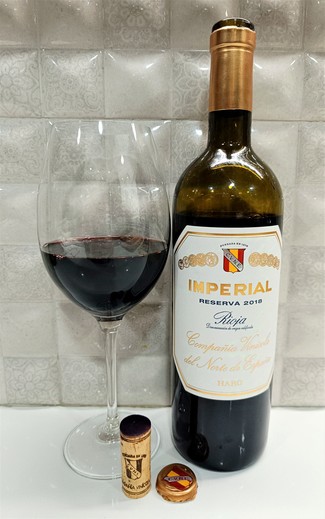INTRODUCCIÓN: Hoy vamos con este clasicote, un Imperial reserva del cual leemos que "proviene de viñedos seleccionados de distintas parcelas repartidas en las localidades de Villalba, Briones y Torremontalbo, a una altitud entre los 450 y 600 metros.Fincas Arigote, La Mina, Caparrito, San Quílez e Pico de Águila. Las cepas son de baja producción, podadas en vaso y mayoritariamente orientadas al sur. Superficie: 42 hectares, incluyendo todas as parcelas. Edad: Más de 40 años. Suelo: Arcillo-calcáreo, pobre en materia orgánica." Abrimos la botella y esperamos una horita antes de proceder con su valoración a 17°C. Corcho largo, compacto y tintado 2 mms desde su base.
