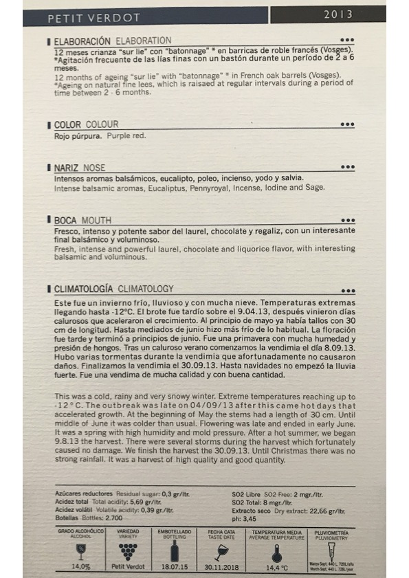 Sabores de menta, cacao con guindas marrasquino, miel, cereza negra, kirsch, tomillo, bayas y regaliz rojo y negro, muy balsámico. Los taninos sedosos y pulidos. Acidez media, alcohol medio, final medio+ con buena intensidad frutal. Vino que es delicioso para unas carrilleras de ternera en salsa de cocoa.