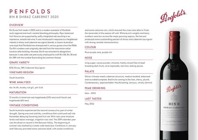excelente vino tinto de variedad autóctona salvaje y mimada por Penfolds,....no quiero imaginar como sabe Grange ( no lo he probado aun).