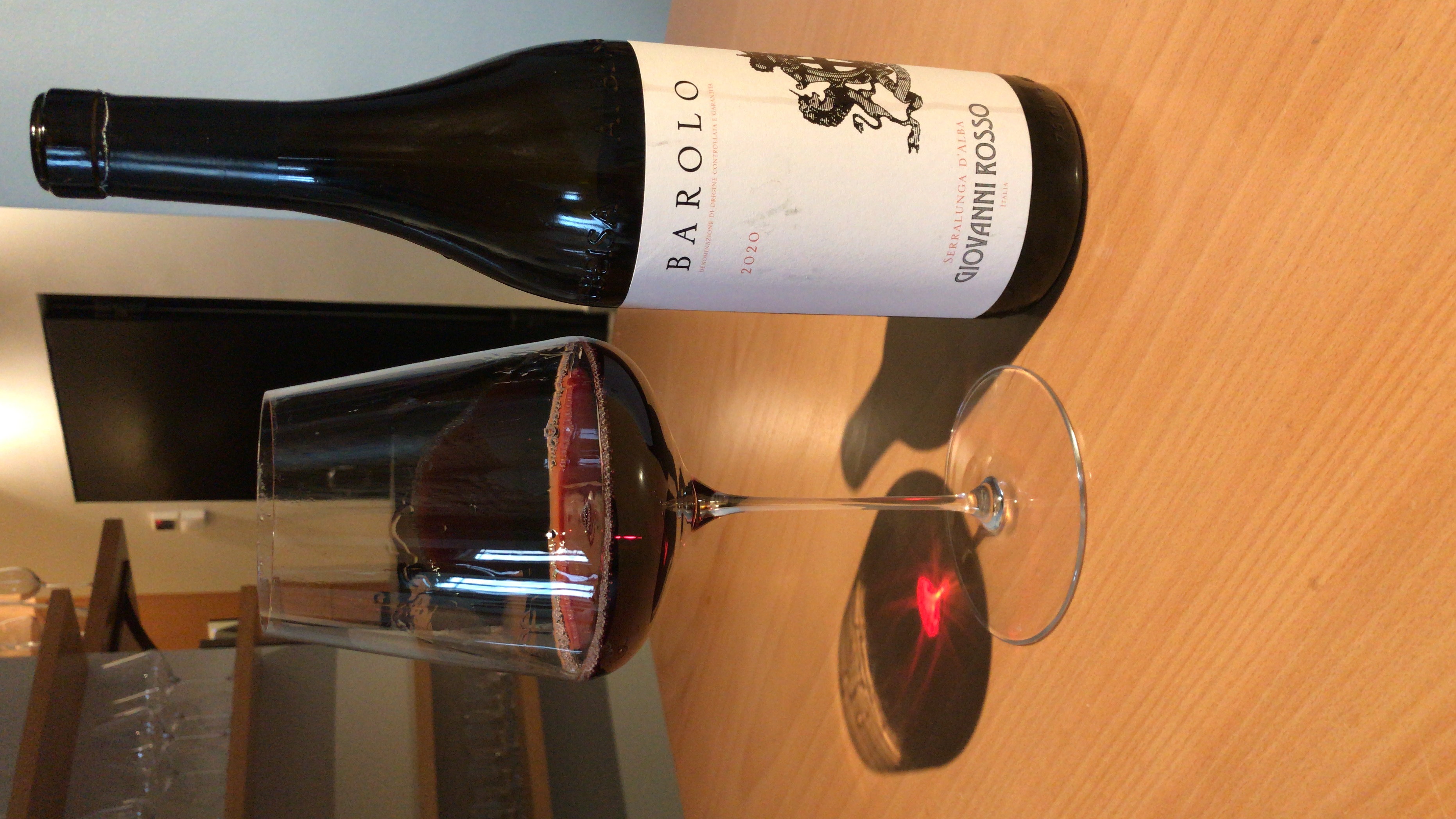Seco, con acidez y taninos para parar un camión, pero buenos y nada agresivos. Es directo, vertical con alcohol. Cuerpo medio+, ganas de sabor a cereza, fresa, hongos, monte bajo, regaliz, es más balsámico que otros Barolo, deja una espiral envolvente. Las notas de madera son muy sabrosas y sus taninos os elevados. Final largo algo cítrico ( corteza de naranja).