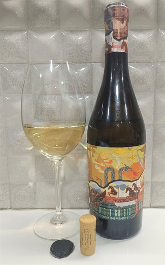 INTRODUCCIÓN: Encontramos este monovarietal de Pinot grigio italiano en las estanterías de nuestro supermercado de confianza y nos lo agenciamos. Abrimos la botella y tras 20 minutos de espera procedemos con su valoración a 11°C. Corcho de silicona.