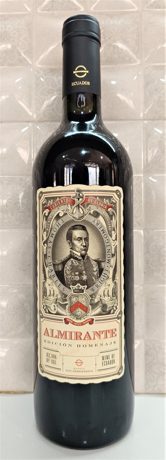 INTRODUCCIÓN: Vamos con otro de los "nuevos" vinos que compramos en Bodegas Dos Hemisferios, aquí en Ecuador. En este caso se trata de un vino de su gama alta, con un coupage 45 % Cabernet Sauvignon, 35 % Malbec y 20 % Merlot. Leemos que este vino "se elaboró como homenaje al Almirante Thomas Charles Wright Montgomery quien participó en las gestas de la Independencia de la Gran Colombia y la Campaña del sur. El primer miembro de la familia Wright (propietaria de la bodega) que cruzó el Ecuador." Abrimos la botella y la dejamos respirar por espacio de 35 minutos antes de proceder con su valoración a 17°C. Corcho compacto, de longitud correcta y tintado apenas en su base.