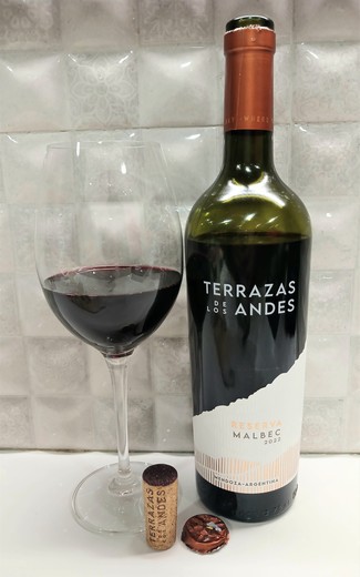 INTRODUCCIÓN: Vamos de nuevo con este monovarietal de malbec argentino del que ya disfrutamos sus añadas 2011 y 2016, veamos esta 2022 que compramos en una feria de vinos. Leemos que "100 parcelas son las que se han utilizado para la elaboración de Terrazas de los Andes Malbec Reserva un tinto coupage donde se unen los mejores viñedos de Luján de Cuyo y Uco (dos valles ubicados en Mendoza, Argentina). Las uvas de Terrazas de los Andes Malbec Reserva se vendimian en Eugenio Bustos, Las Compuertas, Paraje Altamira, Los Chacayes y Gualtallary. Estos seis viñedos, propiedad de la bodega, se encuentran a una altitud entre los 1070 y los 1250 metros. Cada parcela se trabaja por separado y la vendimia se realiza a mano. Las uvas llegan a la bodega, donde serán despalilladas y maceradas por separado. La fermentación se realiza en dos depósitos distintos: una parte lo hará en barricas de roble francés usadas durante 12 meses, mientras que la otra lo hará en piletas de hormigón. Una vez convertido en vino se cata para decidir si es necesario la clarificación. Por último, este tinto se embotella y pasa un mínimo de 14 meses en reposo antes de lanzarse al mercado." Pero vamos a lo nuestro. Abrimos la botella, servimos en la copa y esperamos 45 minutos antes de proceder con su valoración a 17°C. Corcho prensado, largo, compacto y tintado apenas 1 mm desde su base.