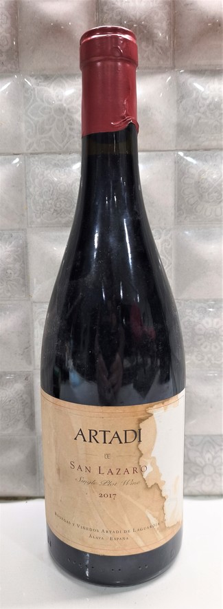 INTRODUCCIÓN: Nos agenciamos esta botella en una superoferta en 2020 por 69 euros (ahora está entre 100-120 euros). Leemos que "Procede de un viñedo plantado en 1956, con orientación noroeste, en la localidad de Laguardia, asentado sobre un suelo arcillo-calcáreo con textura arcillo arenosa, un suelo profundo y pobre, cuya peculiaridad es la superposición de horizontes formados en la era cuaternaria, de arenas finas, sobre un suelo calizo de la era terciaria. Es un terreno muy bien oxigenado, con una gran riqueza biológica y un gran potencial vitícola. Su localización al abrigo de los vientos del sureste favorece la protección natural de las cepas y genera un microclima único en la parcela." Y volviendo a lo nuestro, la botella tenía la etiqueta manchada por un accidente con otro vino, pero el nivel de líquido está perfecto. La abrimos y dejamos respirar por 75 minutos antes de proceder con su valoración a 17°C. Corcho fantástico, largo, muy compacto y tintado 1 mm desde su base.