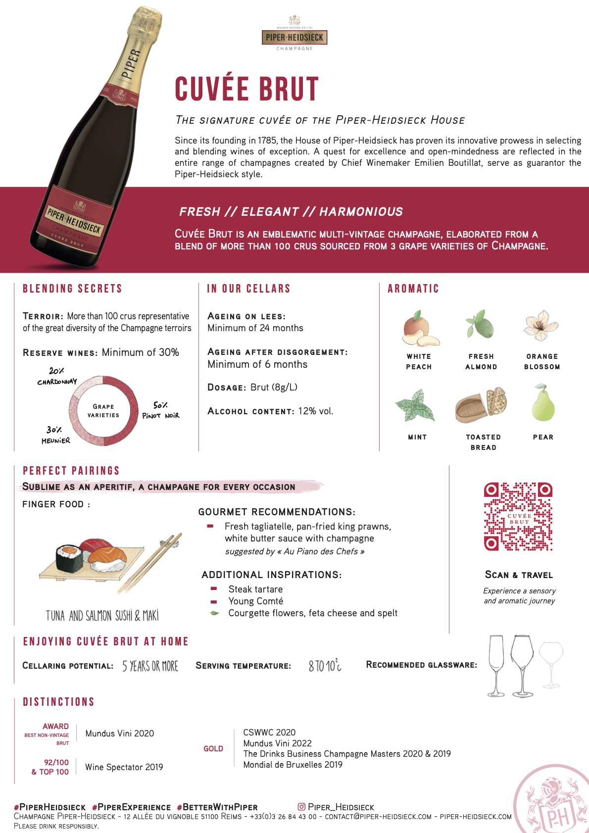En nariz se combinan deliciosamente las notas de frutas blancas y cítricas, pera limonera, manzana verde y pomelo con un puntito de lima; aromas de frutos secos, almendra cruda y avellana tostada, junto con notas de pastelería acaban de configurar la paleta aromática de este atractivo y seductor Champagne.