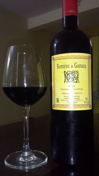 Hoy catamos un vino de una bodega a la que admiro. Se trata de un Remírez de Ganuza reserva 2.001 con un "coupage" 90% tempranillo y un 10% de graciano, hermano pequeño del ya catado el pasado mes de Junio, Trasnocho 2001. En Junio de 2010 Jay Miller (Wine Advocate) subió la puntuación de este reserva 2001 de 94 a 97 y es que estos vinos evolucionan en botella maravillosamente. Veremos lo que nos depara. Lo abrimos dos horas antes de la cata y fue servido a 17ºC. El tapón excelente, largo, compacto y muy poco teñido.