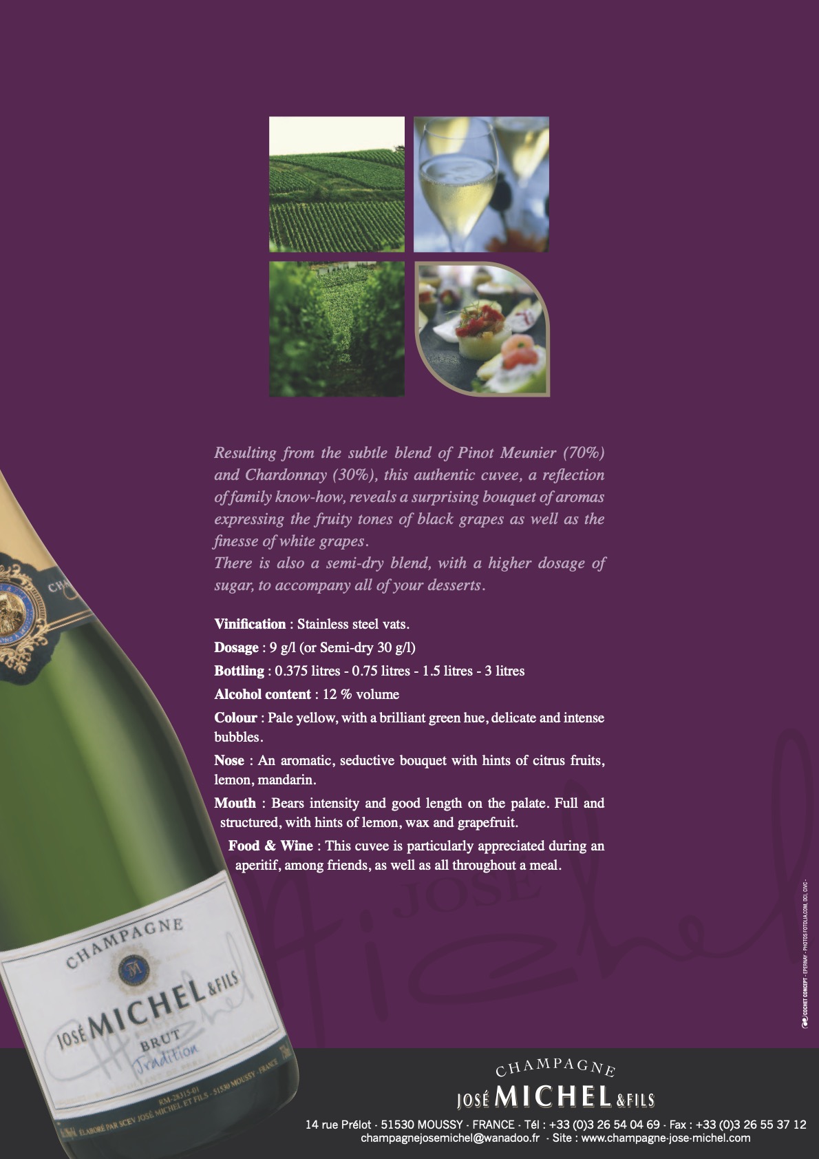 Muy buena relación calidad precio para este champagne digno, fresco y franco. Color amarillo pálido con burbujas un poco fuertes y muy explícitas. En náriz es potente y con aromas intensos con notas de pastelería, cítricos y lácteos. En boca entra de forma excelente, notándose mucho el carbónico, pero es uniforme. Buen champagne para un aperitivo que resulta delicioso.