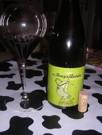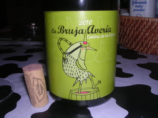 La etiqueta de esas extrañas que no informa mucho, con unos dibujos algo sobredimensionados de la supuesta bruja con una copa de vino y curiosamente se tomaron dos botellas y cada una de ellas era de un color distinto la misma.