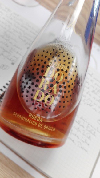 Color ambar con matices dorados, brillante y limpio. En aromas hay un carácter punzante suave, yodados, tostados, hierbas secas y frutos secos. Después encontramos miel, aromas pasificados (dátil, orejones) todo bajo una bruma de barníz. En boca es un vino elegante, con volumen y untuosidad, repitiéndose esa sensación yodada, y salina. Buena acidez y un punto más hacia lo dulce en boca.